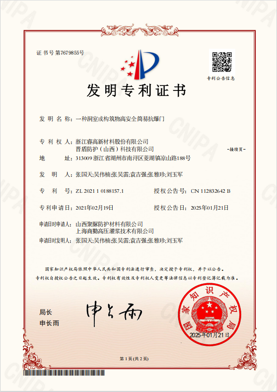 全年锚定抗爆、防腐、防护材料三大核心技术方向,以实战场景需求为导向精准推进研发与制造融合创新,成功斩获“高安全简易抗爆门”发明专利,同步开展方舱、抗爆门、抗爆窗、防弹油箱的定制化制造,顺利研发磁吸堵漏板等核心产品,构建起“材料研发+装备制造+应急产品”的高端防护装备体系,全方位适配实战防护需求。
