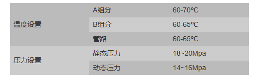 ★ 本产品使用可加热、加压作业的专用喷涂设备,A、B 组分应分别加热到 60~70℃,喷涂设备必须能产生足够的压力和恒定的温度才能使材料达到最佳性能。