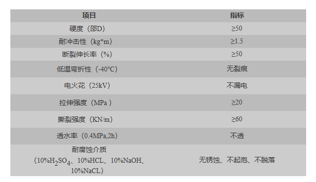 (2)聚脲涂层性能应符合技术指标表中的要求。